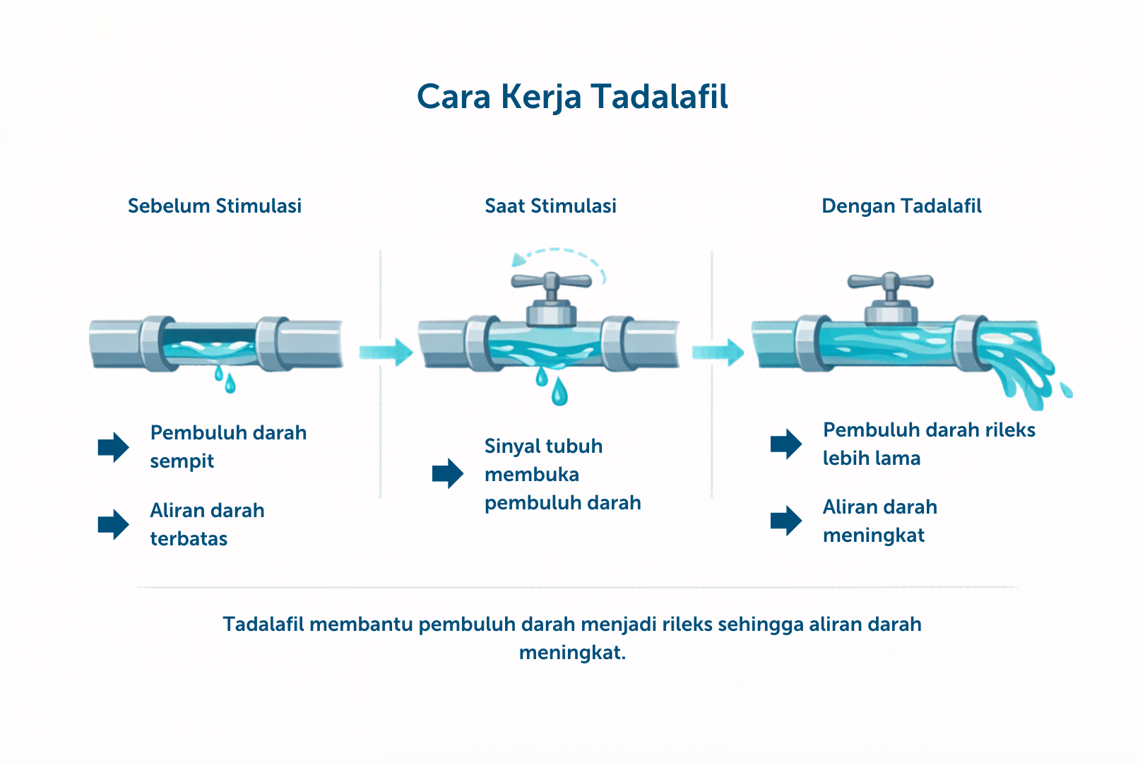Tadalafil membantu meluruskan selang tersebut, sehingga aliran darah menjadi lebih lancar.